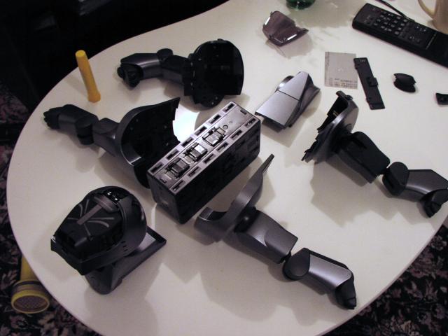 ところで、アイボってあるところまでは簡単に分解できるってご存じでした? こちらのページに詳しいのですが、金尺一本で、頭、尾、前右、前左、後右、後左、本体、と分解できます。