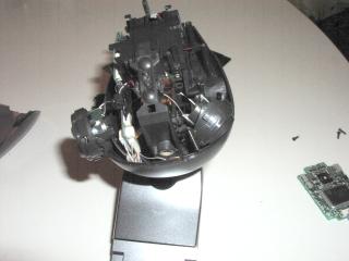 これは困った、ってことで、再度分解してチェック。こんどは、首から頭蓋骨を外した状態で(配線は全部しておく)、首上下モータに首が負荷にならないように、頭は手で持った状態で、動作させてみました。こんどは成功。