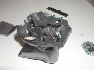 ちょうど、ビデオのバッテリーパックのような、かみ合いがあって、内部のロックを金尺で外すのです。この機構とそのコンセプトを考えた人はすごいなー、って思いました。他に競うものがない、AIBOという商品で、ここまで練り込まれた構造とコンセプトに、すなおに関心しました。もっとも、ロボットペットを20万円で商品化しようという時点で、そうとうのこだわりがあったからこそ、ここまで詰めたことができるのでしょう。