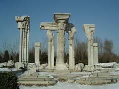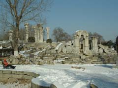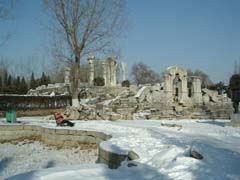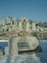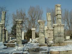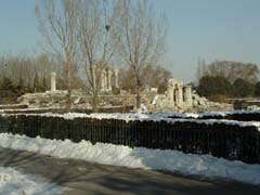 | 前回の北京旅行では圓明園には行きませんでしたので、今回は圓明園に行きました。さすがに観光客は少ないですね。今回は天安門見学後の訪問でしたので、地下鉄を東西線・環状線と乗り継いで、西直門で下車、そこからちょっとだけ歩いて、新しくできた地下鉄13号線で「五道口」へ行き、そこから歩いて圓明園へ行きました。 この地下鉄13号線はまだ6駅か7駅しかありませんがいずれは北京市の北方をぐるりと回って東直門まで通じる予定らしいです。地下鉄ですが、全線高架です。地上なので明るくて、ちょっぴり新しい感じがあります。 |