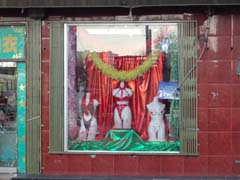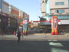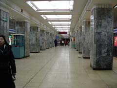 | 今回の北京で残念なことはお気に入りのデパート「隆福大廈」が閉店してしまっていたことです。27日で終わっていて、28日に行ったら店頭のシャッターに告示が張ってありました、う〜ん、残念。日用品、お土産、コートなど何を買うにも重宝していたのに…。 しかたなく、王府井の東安市場などを見て回りました。でも結局王府井から東単へ続く、摩天楼「東方広場(?)」へは入らずじまいでした。 ちなみに最後の一枚は北京の地下鉄構内(プラットフォーム)の写真です。 |