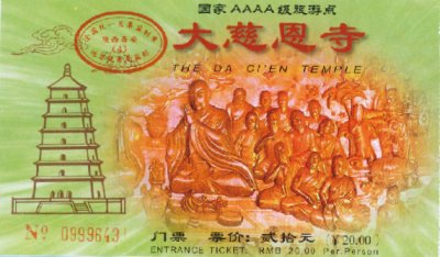 | 大雁塔入場券 | 兵馬俑博物館入場券 |