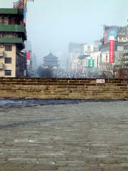 大雁塔から、延々歩いて南門まで行きました。かなり疲れましたが、道が広くなっていること、車の量が多いことに驚きです。大学生時代には、もう少し「田舎の町」という雰囲気が色濃く残っていたのですが…。それと「西安の発展、西部の開発」といった横断幕や看板を街の至る所で見かけました。
