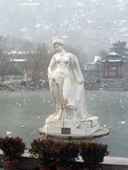 この日は一日オプションツアーを申し込んでおいたので、華清池・兵馬俑・半坡遺跡などを回りました。時間の制約のためか、それとも今は解放していないのか、西安事件の時、蒋介石が寝ていた部屋などは見学しませんでした。源泉は湯気が出ていましたが、自由に触らせてはもらえず、お金を取っていました。