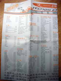 新東安市場地下レストランのメニュー