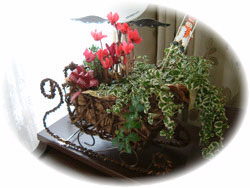 義父の還暦祝のお返しにいただいたシクラメン,プミラ,ヒイラギの寄せ植え。