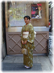 2002.3.3(日) 雛祭りKIMONOコンサート 親からもらった着物がたくさんあるのに,なかなか着る機会がありません。 せっかくだから着物のイベントがあれば参加してみたい今日この頃。 今回は京都市のイベントで,雛祭りKIMONOコンサートというのに行ってみました。 和装振興のためのもので,入場者はみんな着物を着ていないといけません。 今回の着物は抹茶色に淡いピンクの桜の散った古典柄。 ちょっと変わったデザインと色がお気に入り。 コンサートはカローラのCMにも出ている津軽三味線の上妻宏光さん。 伝統的なじょんがら節とかもあったけど,何と言っても上妻さんのウリは伝統芸能を現代的なものにアレンジしている所で,シンセとのセッションは何ともいえない空間でした。 | |