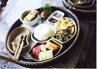 ここではナシチャンプル(ご飯の周りにいろいろなおかずが乗っている皿)とキャラメルティーを飲んだ。
