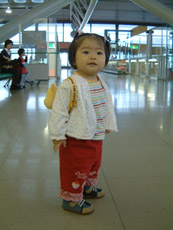チェックインの時に「バシネットをご利用されますか?」と聞かれたのだけど,旅行会社でリクエストした時に6ヶ月以上は使えないと言われていたのでそう言うと,使えますとのこと。それじゃあ使わせてもらおう。沖縄旅行の時には航空会社のベビーカーを借りたので,また借りようと思ったら「日本航空ではございますが,ガルーダインドネシア航空では貸し出ししておりません。」とのこと。荷物は既に流れて行っちゃったし(^^;。仕方がない後しばらく抱っこでがまん。 バリでは入国の時にビザ代として4日〜30日滞在の場合1人25ドル必要なので,前もって3人分用意。HIYOみたいな赤ちゃんでも同じ25ドル必要って高いなあ。ガルーダのチェックインで混んでいたのがそのまま両替所にまで続いている感じで,ここでも行列。今日はバリに行く人やたらと多いのか!? 手荷物検査,出国手続きを済ませて搭乗ゲートに向かった時には既に搭乗が始まっていました。しかも出発時間が15分早まって10:45になってるし。キッズコーナーでHIYOを遊ばせる暇もなく,搭乗口へと慌てて向かいました。そして乗り込む前に,HIYOのオムツを替えなくちゃと思い出し,トイレを探したら階段を降りた所にあり,しかもオムツ替えシートがない!仕方がないので洗面台が濡れていないのを確認して,そこでオムツ替え。階段を駆け上がり,出発予定時間ギリギリで慌てて飛行機に乗り込んだのでした。 しかしチェックイン・カウンターでは私達の後にもまだまだ並んでいた人達がいました。その人達を待たずに出発するわけがありません。結局全員が乗りこむのにその後30分くらいかかり,出発したのは元の出発時間よりも遅れて11:15頃になっていました。