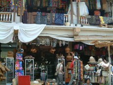 2階建ての建物に,カゴや更紗や雑貨のお店がたくさん入っていて,なんだか混沌としています。あんまりみんな熱心に呼び込みをしてくるわけではないので,ぶらぶら眺めて歩いていたのだけど,細い通路を通ろうとした所でお姉さんが子供用の服を持ってHIYOに合わせたりして呼び止めてきました。その服はちょっとHIYOには大きかったのだけど,お店に香辛料が並べられているのを見てちょっと立ち寄ってみることにしました。