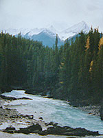 昼からはキッキング・ホース峠を越えてタカカウ滝を目指す。この峠は大陸分水嶺で,西はブリティッシュ・コロンビア州,東はアルバータ州になる。 |