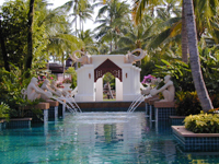 インペリアル・ボートハウス・ホテルは,サムイ島の北に位置するチョンモン・ビーチに面し,空港から4キロのところにあります。34部屋のボートスウィートは,チークで造られた平底荷船を改装し,家具を取り揃えた豪華な客室。