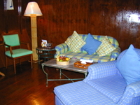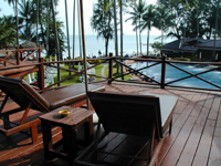 このボートスウィートは通常2階建てで,出入り口はベッドルームのある2階にあるらしいのだけど,私達の泊まったのは2階建てではなく,1階建ての2つの船がくっついたようなタイプで,ベッドルームとリビングに分かれていました。このタイプはビーチに近い側の7部屋だけで,ベランダからはビーチとボート型のプールが見え景色がよかったです。申し込んだのが遅かったのにラッキー。
