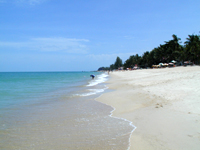 | ◆ラマイ◆ チャウエンビーチから南へ10kmの所にあるラマイビーチはサムイ島で2番目に大きいビーチ。遠浅のチャウエンとは違って,結構すぐに深くなっていて波も高い。でも引き潮でも泳げるのはいいかも。 ビーチの砂はさらさらした感じではなく,目が粗い感じでした。 | ![]() | ![]() |