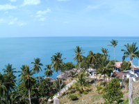 | ◆VIEW POINT◆ 小さな島だけれど,意外にアップダウンのあるサムイ島。峠のてっぺんにはビューポイントがいくつかあります。左の写真はチャウエンとラマイの間にあるビューポイント。海に突き出したテラスのある見晴らしのいいレストランなどがあります。 海を見下ろしながら坂道を下るのはとっても気持ちがいいです。結構坂道がきついのでバイクでこけないように注意! | ![]() | ![]() |