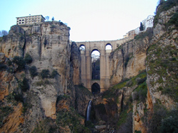 ロンダはグアダレビン川が刻んだ深いタホ谷によって新市街と旧市街に隔てられている。今日の宿はスペインに来たら一度は泊まってみたいパラドール。タホ谷に架かるヌエボ橋の新市街側にある。