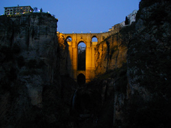 日が沈んだ頃ヌエボ橋に明かりが点いた |