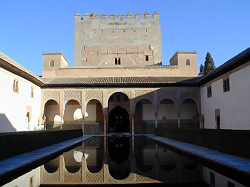 アラヤネスのパティオ 静かな水面に映るコマレスの塔 |