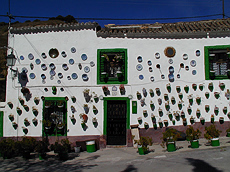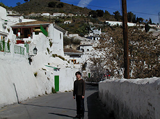 少し戻りサクロモンテの洞窟住居がある辺りをうろうろ歩いてみる。この辺りにはクエバと呼ばれる洞窟住居がたくさんあり,中にはフラメンコが見れるタブラオもある。道沿いの家は,家と斜面が同じ白塗りになっていて一体化している。