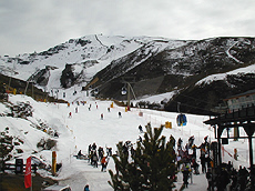 肝心のスキー場はというと,ヨーロッパで最も南にあるスキー場なだけあって,さすがにシエラ・ネバダの山の上でもちょっと雪は少ない。一番下の方は降雪機で雪をまいているんじゃないかな,という感じ。“太陽と雪”「ソリニエベ」と言う名のスキー場は,2月でももう太陽が勝ってしまっていた。それにしてもスペインと言う国は面白い。昨日はコスタ・デル・ソルで「夏」を感じたのに,今日は数百キロ離れただけの同じスペインで「冬」の景色なのだ。