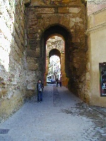 セビリア門はこの町にあったアラブの城の城塞で,コルドバ門というのもある。門の下に黒い野良犬がいて,ずーっと私達についてきた。かまわずカルモナの町を歩いていく。ここも石畳の細い道が多く,家の壁は白い。