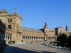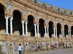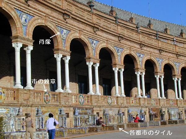 このスペイン広場は1929年のスペイン・アメリカ博覧会の会場としてつくられたもので歴史は浅い。それでも半円の回廊は見事である。