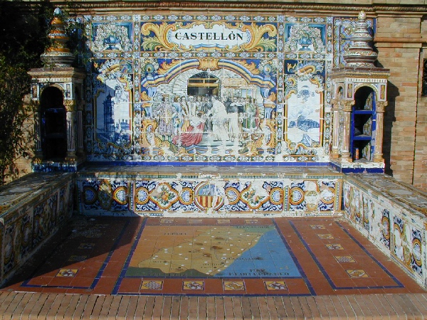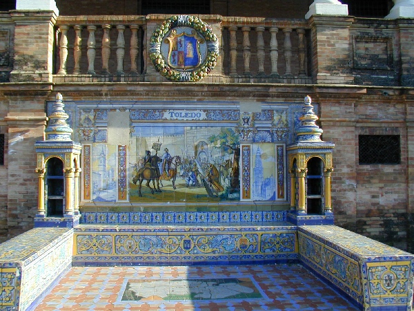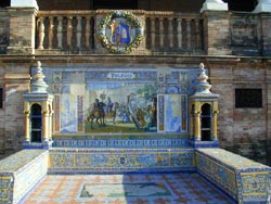 しかしスペイン広場自体はなかなか面白かった。スペイン各都市の地図と歴史を描いたタイル,市の紋章,その都市の市長(?)の肖像がずらーっと並んでいたからだ。ひびが入ったり少し汚れたりしているが,変な落書きなどされていないのがうれしい。一つ一つの都市の歴史的な場面が描かれていると思うのだが,それが詳しく分かればもっと楽しめただろう。