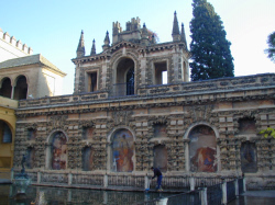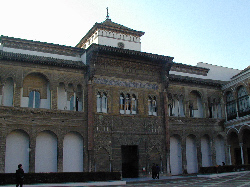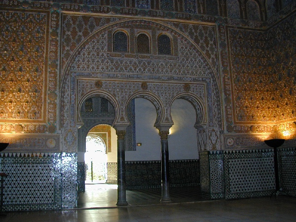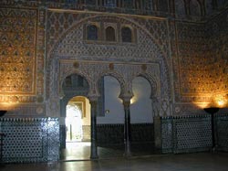 アルカサルはもともと8世紀にイスラム教徒によって建てられた城だが,その時代の部分はわずかしか残っておらず,キリスト教徒がセビリヤを奪還してからのものがほとんどであり,ここにもイスラム教徒とキリスト教との争いの歴史が見られる。残忍王と呼ばれたべドロ1世がムハデル様式のこの建物を完成,のちに時代とともに手が加えられていったので,様々な時代の建物や庭園の様式を見ることが出来る。