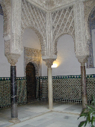 ムハデル様式の傑作 大使の間  カラフルなモザイクタイルと 壁一面に刻まれたアラベスク模様は圧巻 |