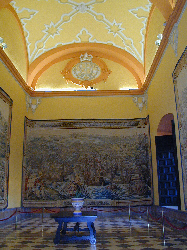 大広間 18世紀にマドリッド王立タペストリー工場で 作製された「チュニス征服」を題材とした 一連のタペストリーが飾られている |