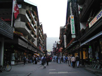 バーンホーフ通りの一番マッターホルン寄りにあったレストランで,山を眺めながら夕食にしました。この日はマッターホルンの先端に雲がかかったまま,全姿を拝めずじまい。もうちょっとで見えそう・・・というところで,また次々と後ろから雲が沸いてくる。