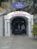 ツェルマットでのお宿はシェーネッグホテル。スネガ行きのケーブルカー乗り場のすぐ近くに入り口があるんだけど・・・。不思議なことに,地下のトンネルをくぐりエレベーターで上に上がると,ホテルのフロントにつきます。そう,このホテル丘の上にあって,もし下から普通に丘を歩いて登ると20分ぐらいかかりそうなところに建っているのでした。その分景色も抜群。ツェルマットの街を見下ろすような感じです。