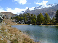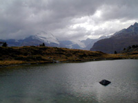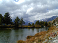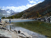 グリンジゼーも逆さマッターホルンがきれいらしいのですが,残念なことにマッターホルンは真っ暗な雲の中でした。確かにリッフェルゼーと違って湖の周りに木も生えていて,緑とマッターホルンの白とがきれいに映るんだろうなあと思える景色だけに残念。