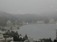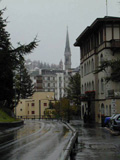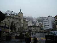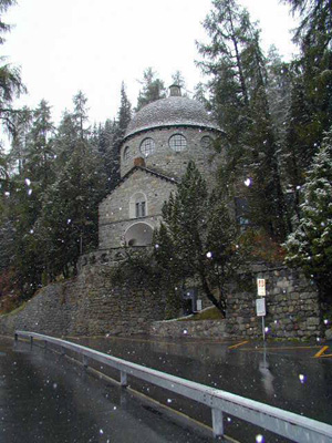 朝起きて驚いたことに外は雪!夜の間に雨の音がしなくなったのでやんだのかと思っていたら雪になっていたのでした。確かにスイスの気候を調べたとき,サンモリッツの最低気温はずっと零下になっていた。だけど9月に雪が降るとは・・・。