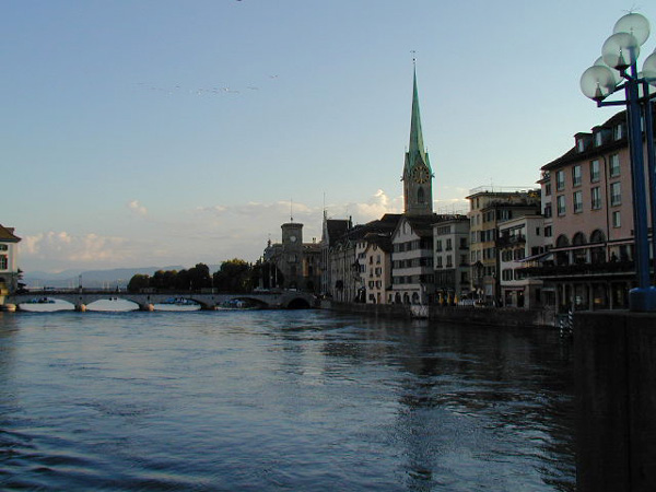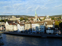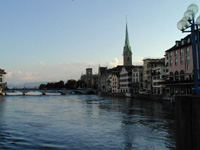 チューリッヒに3時過ぎに着いたので,町を散策することにしました。やはりスイス最大の都市だけあって大きな街。駅も大きく約30ものレストランやカフェがあるらしい。コインロッカーも十分過ぎるほどありました。通りにもたくさんの売店とかがあって,チューリッヒだけしか来なかったら,スイスってこんなとこなのって思ってしまいそうです。バーンホーフ通りをチューリッヒ湖に向かってぶらぶら歩いていきました。カルティエやルイ・ヴィトン,シャネルなどのブティックが建ち並び,道行く人もかなりおしゃれでした。途中でリーデンホーフの丘に登り,チューリッヒの街を見下ろしました。ここは市民の憩いの場といった感じで,子連れの人や,お年寄りの人達がのんびりくつろいでいました。丘を下り,聖ペーター教会,聖母聖堂の眺めながら歩き,チューリッヒ湖に出ました。