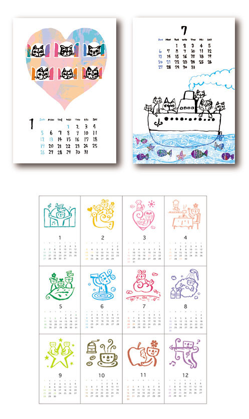 オリジナルのカレンダーを1997から毎年、青山のスパイラルで 販売させていただいております。 いまでは新しい制作スタイルを発表するための ライフワークとなっています。 |
