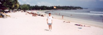 で、こちらが“ほぼ”プライベートのビーチ。物売りもいないし、平和なもんです。そして、外人のおじさんより背の高い波。わたしらも一応水着でビーチに出たけど、つれに無理やりこの波の中に連れてかれて、頭から大波かぶって砂地に叩きつけられ、おもっきし頭打って、わたしゃこどもみたいに泣いてしまいましたよ・・・x はぅぅ〜 。・°°・(;>_<;)・°°・。 さすがにヤバイと思ったのかつれは、砂でお城を作って、マジでこどもなだめるようにあやして機嫌とってくれましたが。x。 * * * この日の夕食は『アマヌサ』で。(左は『アマヌサ』へ行く道すがら撮ったモノ。) 泊まるのはムリやから、食事だけでも・・・というささやかな野望。・・・ささやかすぎるって?!ホテルに着き、ロビーに足を踏み入れるなり、とろけてしまう。ゥ。すっかり酔いしれてるわたしに、イタリアンのレストランで「ミゴレン(注:インドネシア風やきそば)が食べたい〜」などとぬかすつれ。しかも英語しゃべれへんヤツのかわりに、それをオーダーするのはわたしx そんなことさせるな〜〜〜!と心で叫びつつ、一応頼んでみる。と、別のレストランのメニューにはあるので、そっちから運んでくれるとのこと。うう。ここへ来て、わがままが通る快感まで覚えてしまったわたし。(苦笑) そのあとは、なごやか〜にお食事。南十字星の位置などを教えてもらいつつ。(星、ありすぎてわからんちゅーねんx) 帰りには空いてる部屋を見せてもらうなど、行動力を発揮するつれ。あ、でも、それをお願いしたのもやはりわたしx ま、それなりにえーコンビってことでしょうか?(@_@)