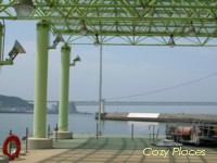平成18年7月22日 明石のスタバで待ち合わせ。 行き先がウェスティンやし ・・・ と、ちょっとおしゃれして行ったら、明石駅前では浮いてしまったx つれにもあとから 「目立ってたで (¬¬) 」 と言われるしまつ。σ( ̄∇ ̄;)? ウチのほうではそれほどでもなかったのに〜 (←自宅最寄り駅は下町・ごちゃまぜ系。?。) これやから中途半端な街はイヤよ。(T▽T) 気を取り直し、てぼてぼ歩いて 『子午線ライン』 乗り場へ。 これまで淡路島へ行くのは車やったこともあって明石海峡大橋を渡るかフェリー利用やったけど、今回初めての高速船。 岩屋まで13分の船旅。あっちゅー間やな。(@@) 窓がキレイじゃないのが残念x 途中、たこフェリーとすれ違ったのに、写真撮られへんかったよ。