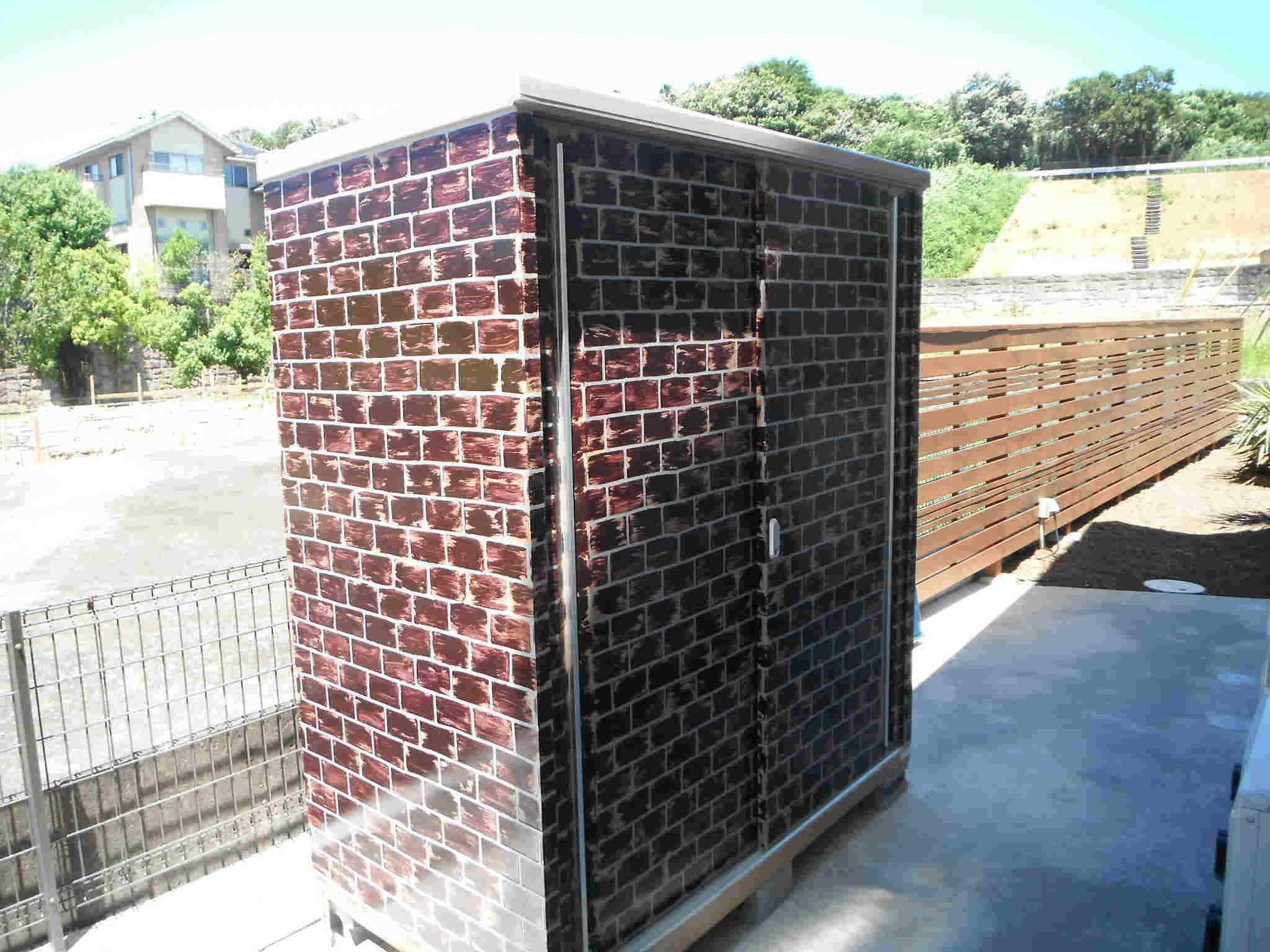既存物置 レンガ調現場塗装