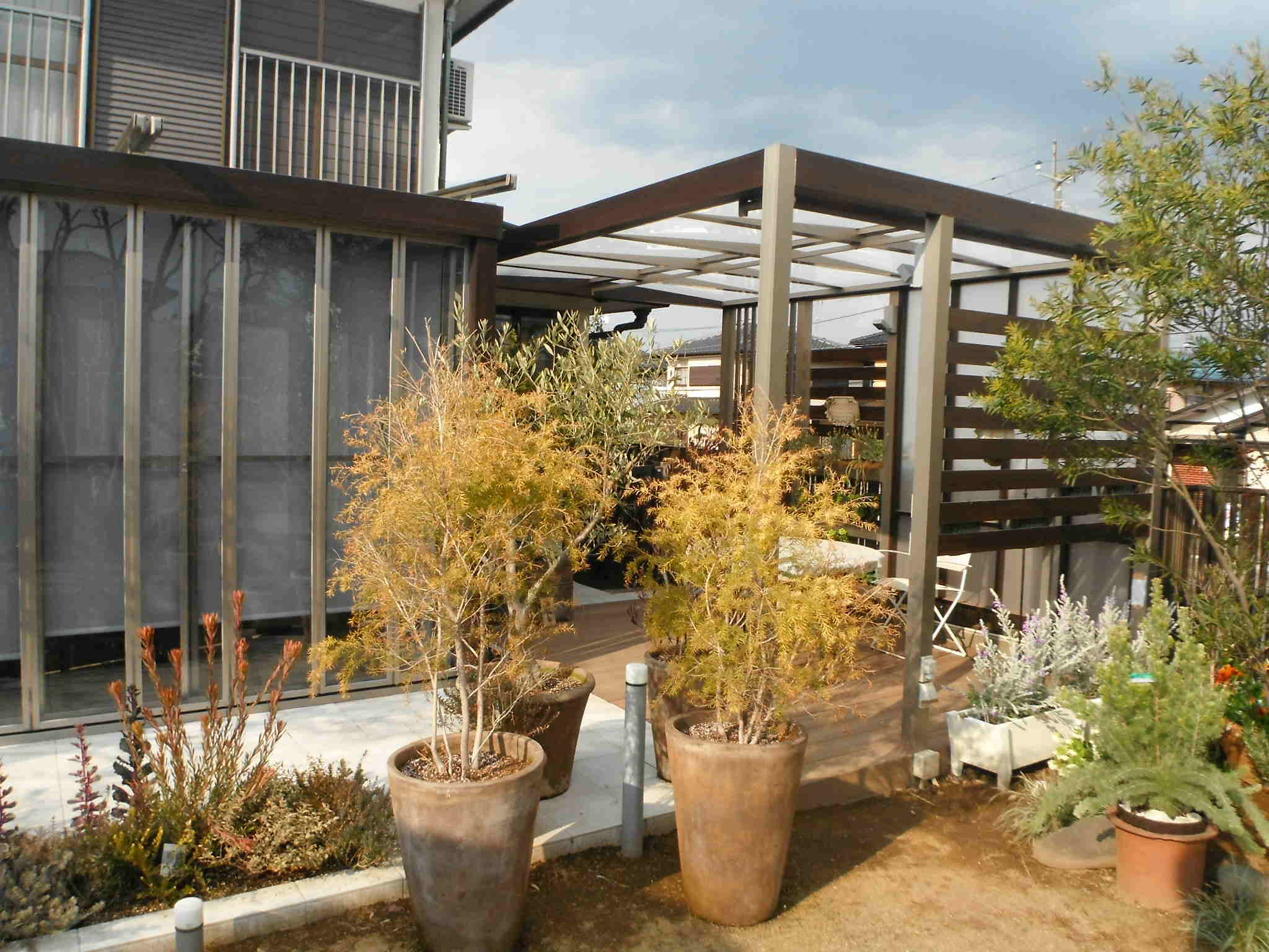新日軽木樹脂デッキとYKKガーデン倶楽部パーゴラ