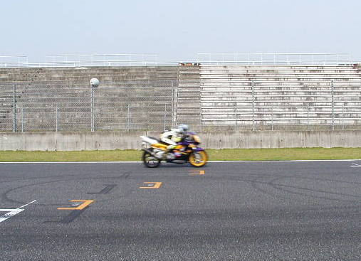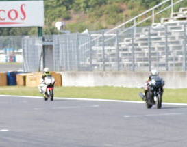 ストレートエンドにR1が見える・・ コースはクリア。思いっきり2コーナーもいってました。