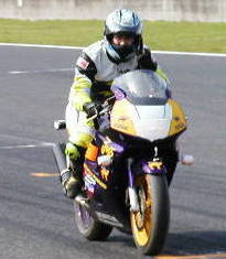 公道でアプリリアのRS250を1台、キャブのGSXR750を1台転倒でぶっこわしているK師匠。