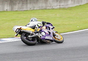 1コーナーの立ち上がり、アトウッドの立ち上がりでハイサイドくらいそうになるくらいタイヤがずるずる来まして
