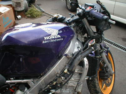 計測の結果フレームに大きなゆがみが無く このままでOKということが不幸中の幸いでした。フォークもステムがよじれただけで生きております。ラジエーターもヘッドカバーがやられただけで本体に異常なし。スクリーンも割れてないし。