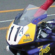 | まぁ ドン付きがあるのですみちゃんは乗りにくい〜って言われてましたが。コーナー出口でがつんとアクセル開けて向き変えるとき、リヤサスがおっつかないくらいパンチがあります。でも低速は無いかと思ったらぜんぜんあるじゃんっと。むしろ上まで分厚く回るので国内より下があるんじゃぁ・・という感じ。先代さいさりす号に続いて、またもやじゃじゃ馬トルクマシンになっちまったです。 サーキットならば高回転が・・と雑誌でも書いてあるし、常日頃からそう思っていたのですが、僕の腕ではトップスピードが5km/h伸びるとかストレートの全開区間とかどうでもいいんですよね、どうせそんな高速区間で似たようなレベルのバイクと張り合って抜きつ抜かれつするほどのバトルは危なくてできません。 230km/hまで出してドキドキブレーキでアブナイツッコミをするよりも200km/hでブレーキングして高いコーナリングスピードで曲がれた方が幸せです。ということで僕にはぴったりじゃないかなぁ。 それでも十分230〜240くらいまで行きますけど。 サーキットではスピードメーターはテープで隠しているので見てません。 4速めいいっぱいで5速に入れてちょいまでが僕の腕なので220くらいかな・・ |