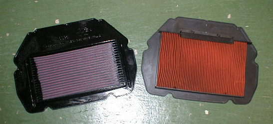 右がノーマル 左がk&n。 ゴムゴムしてます。油まみれです。どっちが表でどっちが裏かわかりませんでした(^^;