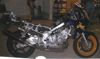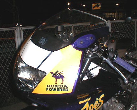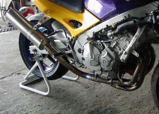 F3のマフラーはF4ほど種類がないです。 前はもっとたくさんあったんでしょうが、今では少なくなってしまってます。2000年現在、わずか2年前のマフラーなのに。さすがマイナーなCBR600F、しかもF4で人気が出る前のF3型ですから。 ただ、取り付けてみたモノの左のカウルの下をカットしないとエキパイとカウルが干渉して溶けちゃうんです。 うーん、バイクの車体もそうですが、マフラーの製造ムラも 困ったモノですね。 こんなものと割り切るしかないんでしょう・・ |