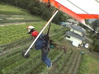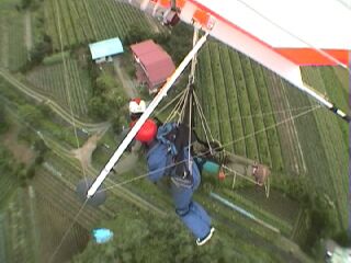 着陸場(ランディング)にいる友達に手を振ってください。 上空から叫ぶと下にいる人には良く聞こえます。 「気持ちいいよ〜(^o^)」って、 | ![]() |